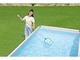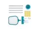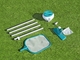 Čistící sada obsahuje: ruční vysavač určený k připojení na zahradní hadici, síťku na hladinové nečistoty, plovák na chlorové tablety a čtyřdílnou teleskopickou tyč.