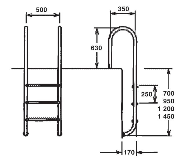 Schůdky pro zapuštěné bazény z oceli AISI 316.