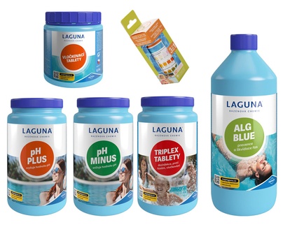 Set bazénové chemie na kompletní chlorovou úpravu bazénové vody. Obsahuje Triplex tablety 200g 1kg, pH- 1,5kg, pH+ 0,9kg, Algicid ALG Blue 1l, Vločkovací tablety 0,5Kg, tester vody.