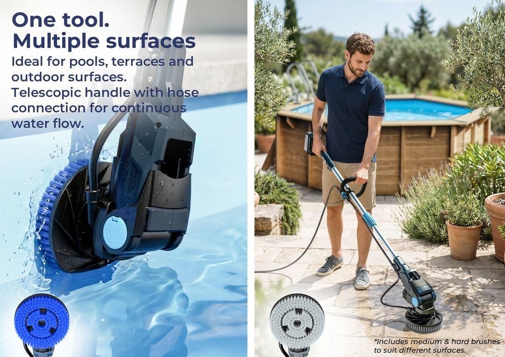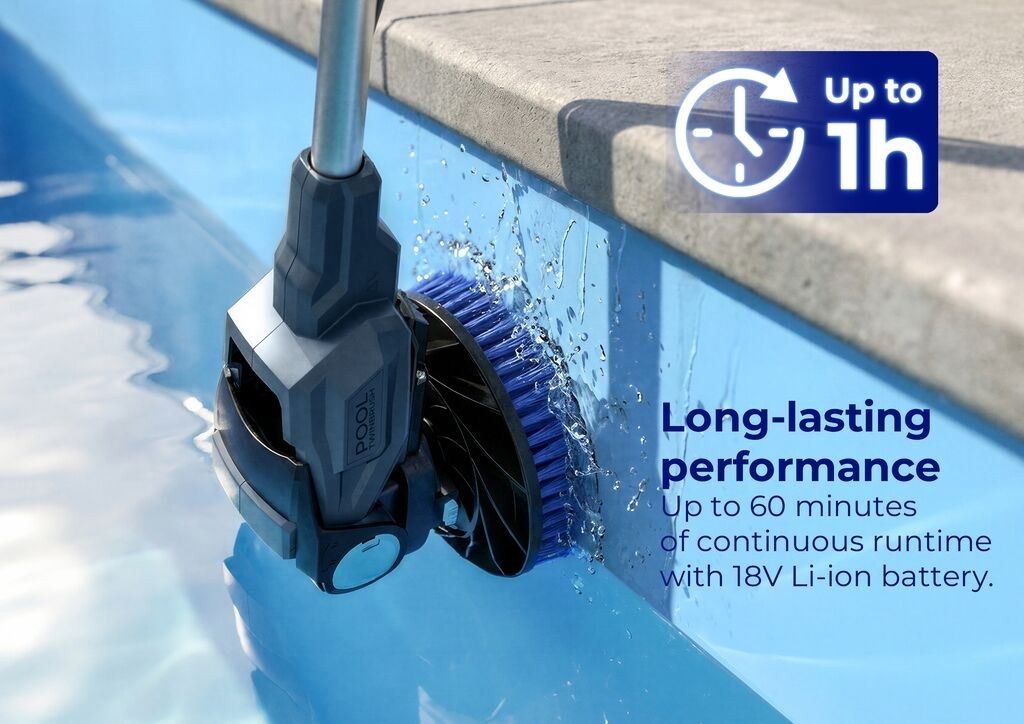 Je ideální pro menší bazény nebo pro dočištění schodů, rohů či mělčin u větších bazénů, kam se běžný robotický vysavač nedostane. Díky výkonnému Li-ion motoru a dvojici proti sobě rotujících kartáčů zvládne účinně odstranit nečistoty z různých povrchů.