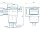 Skimmer s širokým hrdlem, čtvercovým víkem vhodný pro betonové bazény s keramickým obkladem.