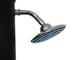 Samonosná konstrukce sprchy slouží zároveň jako sběrný zásobník vody a solární kolektor, který působením slunečních paprsků vodu ohřívá. Teplotu vody si určíte sami díky pákovému kohoutku s regulací přívodu teplé/studené vody.