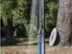 Solární sprcha GRE s hliníkovou nádrží na 38l vody a kohoutkem na oplach nohou.