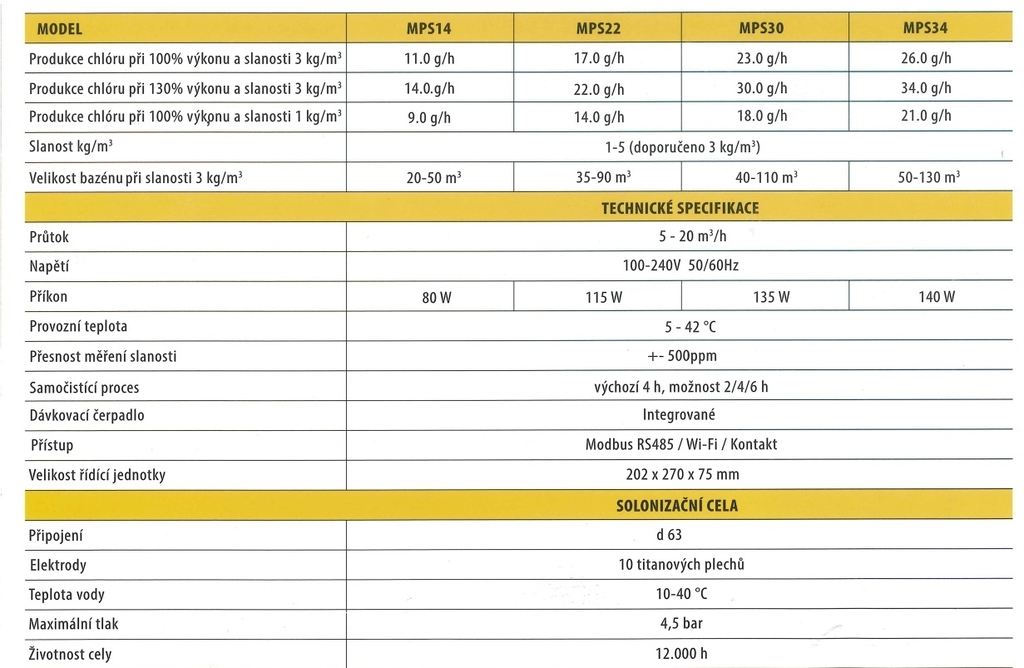 | Produkce chlóru: | 9,0 - 14 g/h |