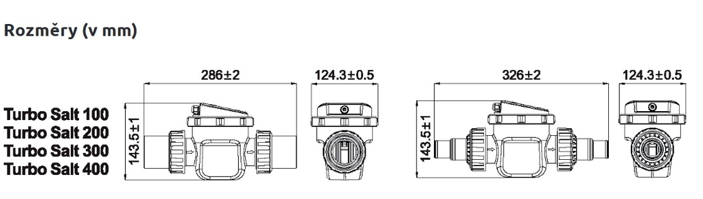 Turbo Salt je dodáván s připojením 50 mm (1' 1/2) a adaptéry 32/38 mm.