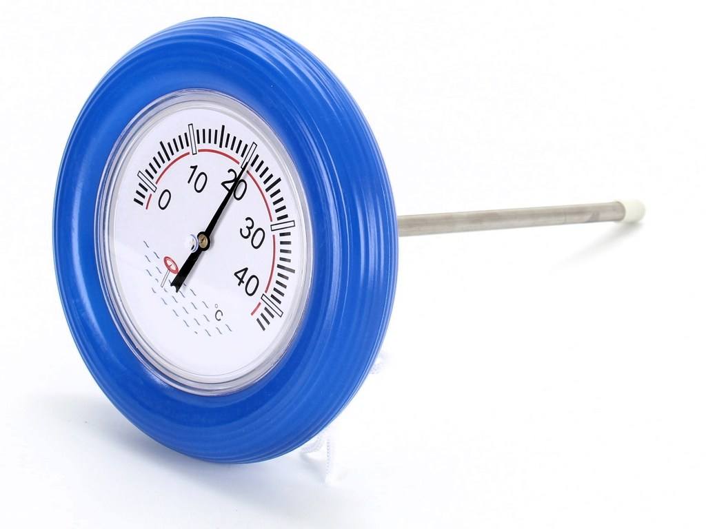 Plovoucí bazénový teploměr. Čidlo z nerezové oceli.