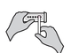 - Testovací proužek vytáhněte ze šálku tak, aby proužek který se zbarví byl směrem nahoru a držte ho ve vodorovném stavu.