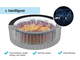 Patentovaný nafukovací systém vám umožní připravit vaši vířivku v jednom jednoduchém kroku. Stiskněte současně tlačítka BUBBLE a UP a sledujte, jak se vaše vířivka před vašima očima magicky sestaví. Není potřeba instalovat další ovládací box. Samonafukování dokáže inteligentně monitorovat tlak, aby vědělo, kdy má nafukování zastavit.