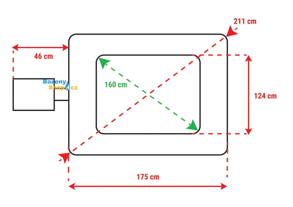 - Vnitřní rozměr 160 × 160 cm (měřeno úhlopříčně)