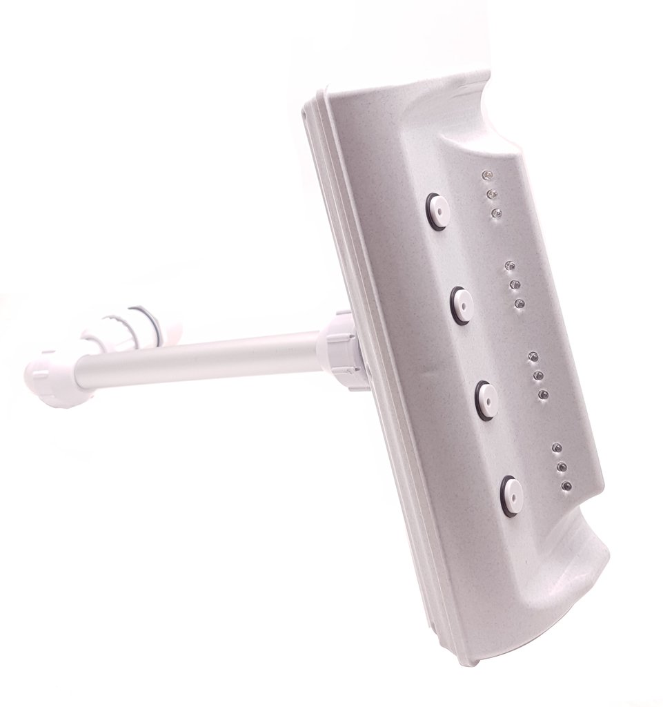 Různobarevné LED osvětlení pomocí 12ks LED diod. Osvětlení zajišťuje vestavěný generátor poháněný průtokem vody. Není potřeba externí elektrické napájení.