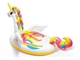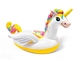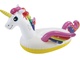 Nafukovací barevný jednorožec o velikosti 198 × 140 × 102 cm.
