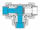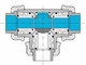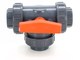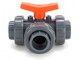 Třícestný kulový ventil PVC s napojením o průměru 50mm. Napojení lepením.