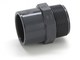 PVC Mufna – přechodka; připojení – lepení (50mm-ext, 40mm-int) x závit ext. (47mm); barva – šedá; (ext. = vnější)