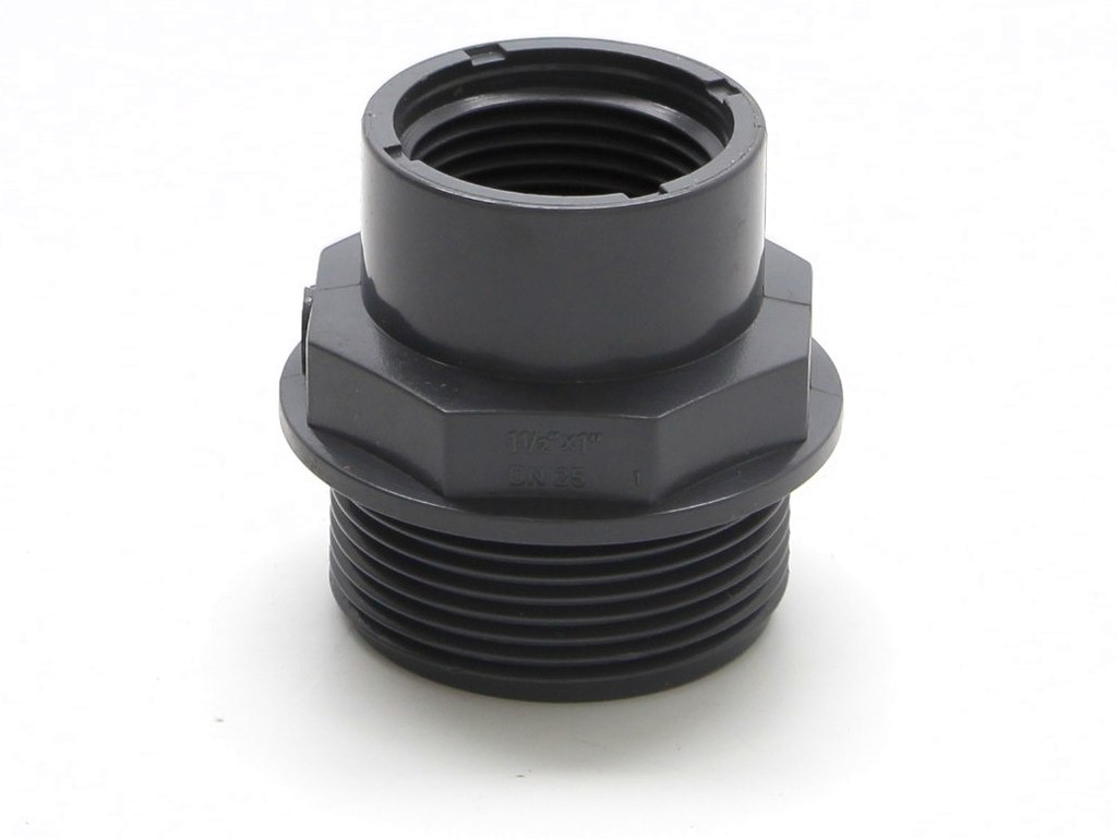PVC Redukce závitová; připojení - závit ext. x int.; barva - šedá; (ext. - vnější), (int. - vnitřní)