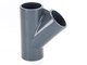 Plastový PVC T - kus 45° o průměru 50mm. Spojení lepením.