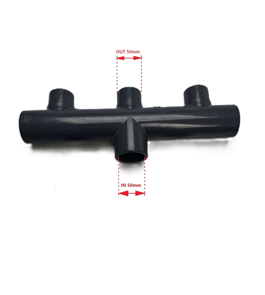 Trojcestné potrubí středové o průměru 50mm. Spojení lepením.
