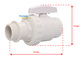 Uzavírací ventil má z jedné strany připojení přes vnější závit 1 1/2" a z druhé strany vnitřní závit 1 1/2".